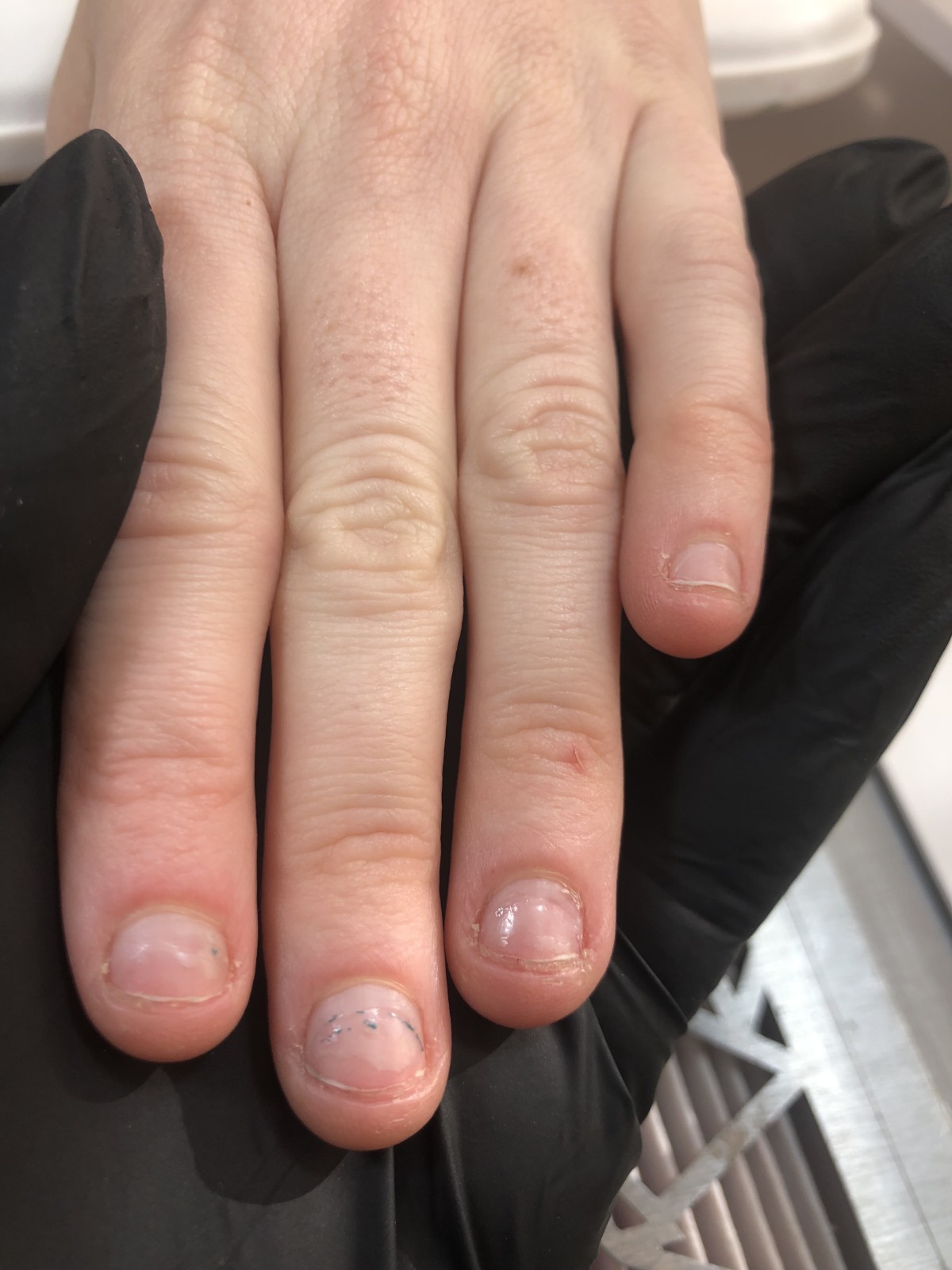 La première séance du protocole n'est pas simple. Les cuticules sont très humides, souples et sensibles; elles présentent souvent des plaies qui rendent le travail de nettoyage des cuticules très délicat et fastidieux.